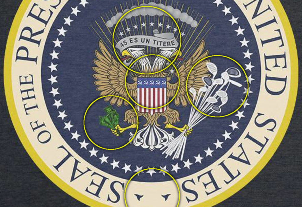 The graphic artist who created the fake seal “substituted the arrows in the eagle’s claw for a set of golf clubs – a nod to the president’s favorite pastime,” Thebault and Brice-Saddler noted.