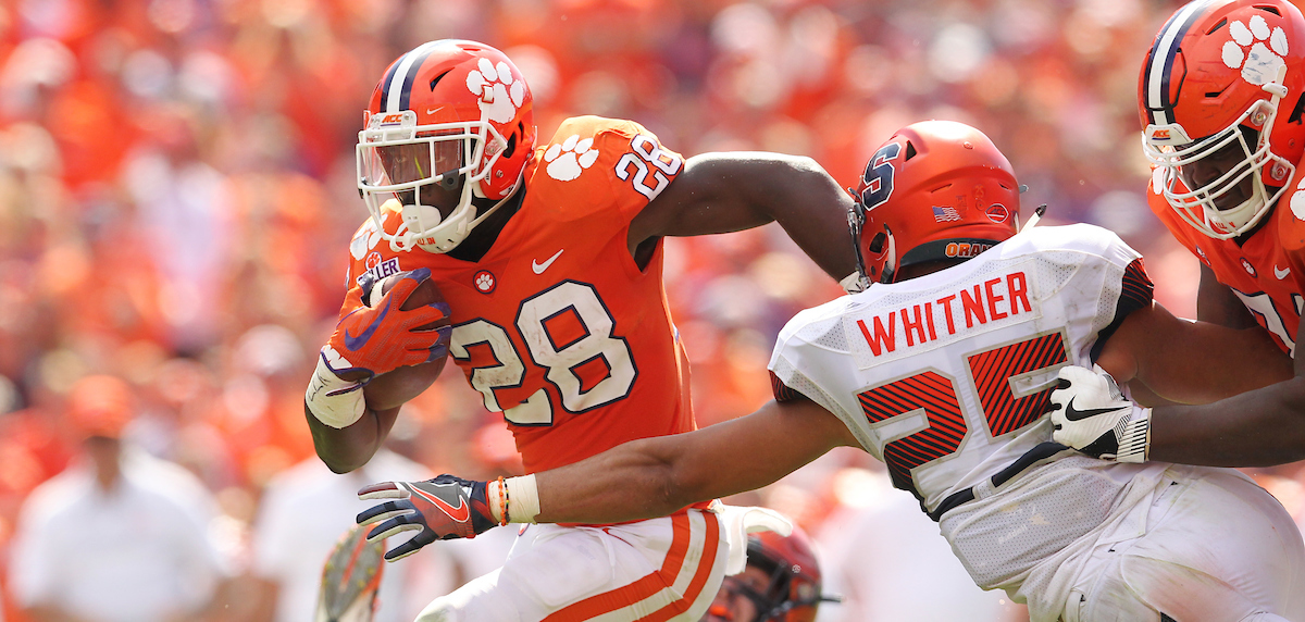 Worth noting? His 5.99 yards-per-carry average is second only to Etienne (7.8 yards-per-carry) in Clemson history.