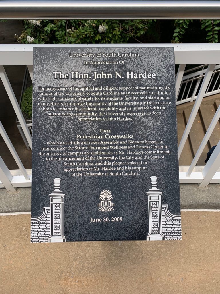 That’s right … it turns out two pedestrian crosswalks in downtown Columbia, S.C. leading into the University of South Carolina’s Strom Thurmond fitness center are also named after Hardee.