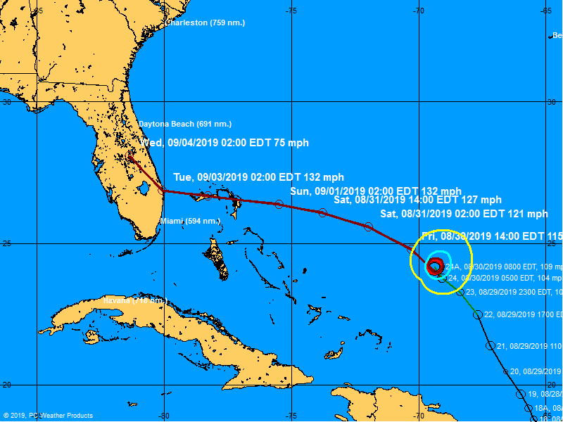 “Strengthening is forecast during the next few days, and Dorian is expected to become a major hurricane later today,” forecasters warned. “Dorian is likely to remain an extremely dangerous hurricane while it moves near the northwestern Bahamas and approaches the Florida peninsula through the weekend.”