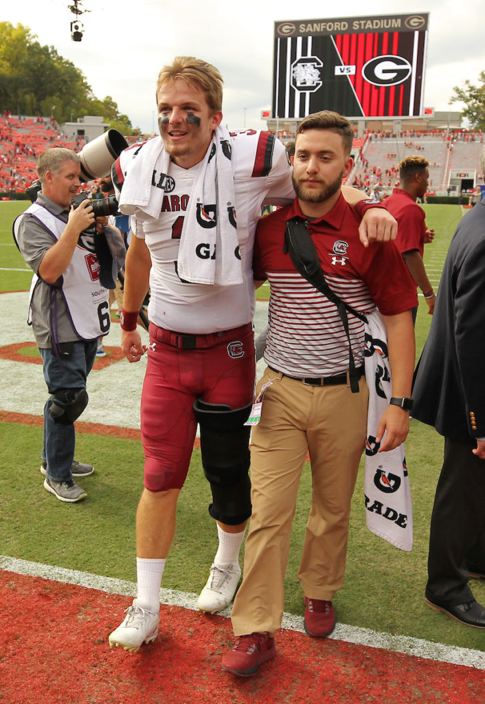 South Carolina had to excel on defense after losing starting quarterback Ryan Hilinski to a knee injury early in the second half. The 6-foot-3, 230-pound true freshman from Orange, California left the game with 9:25 remaining in the third quarter when Georgia defensive back Lewis Cline was blocked into him on a third-and-long play.