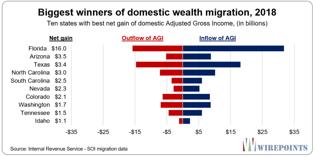 According to analysts Ted Dabrowski and John Klingner of Wirepoints, South Carolina is among those states winning the battle when it comes to migrating wealth … i.e. money that moves with people when they relocate from one state to another.