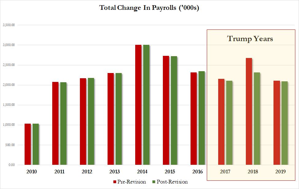 Revisions to historical data trimmed more than 520,000 positions from previously announced employment gains – putting Trump’s annual job creation numbers at 2.1 million (2017), 2.3 million (2018) and 2.1 million (2019). By contrast, former U.S. president Barack Obama posted 2.4 million new jobs in 2016, his final year in office.