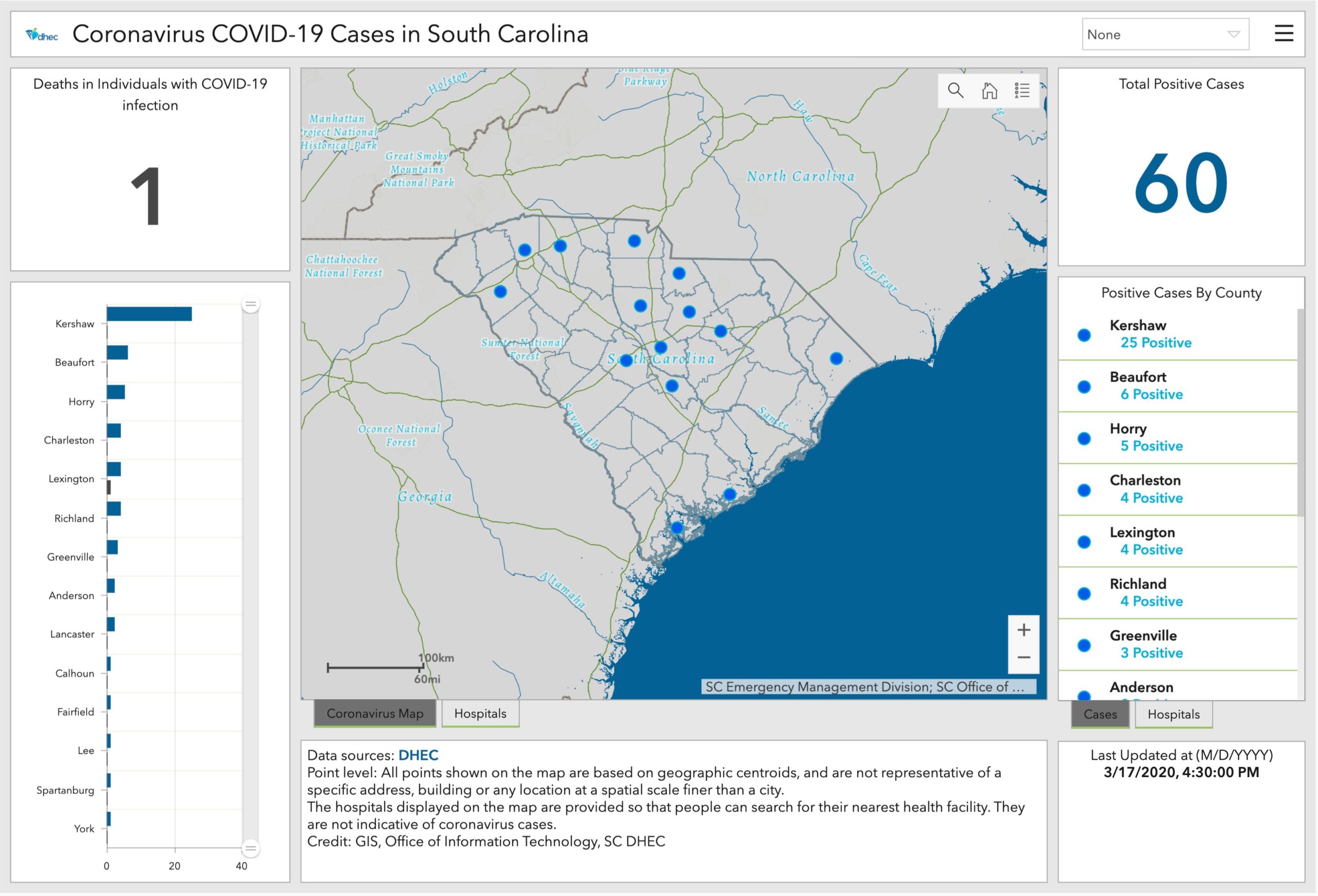 In South Carolina, there have been 60 cases with one fatality, according to the latest statistics provided by government health officials.