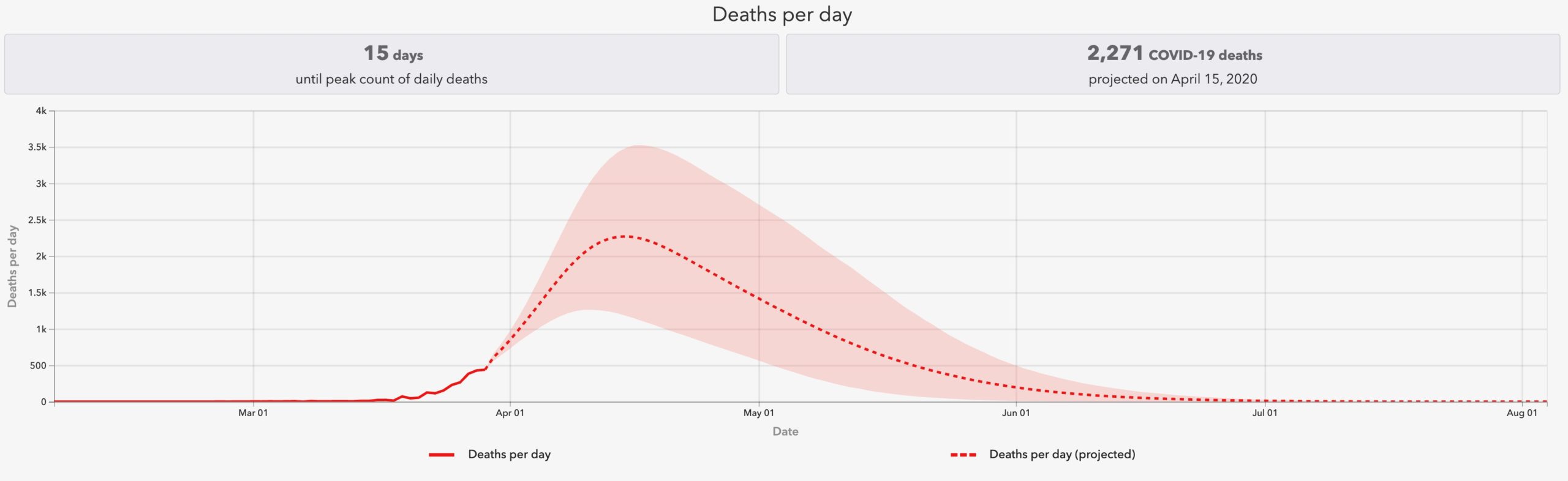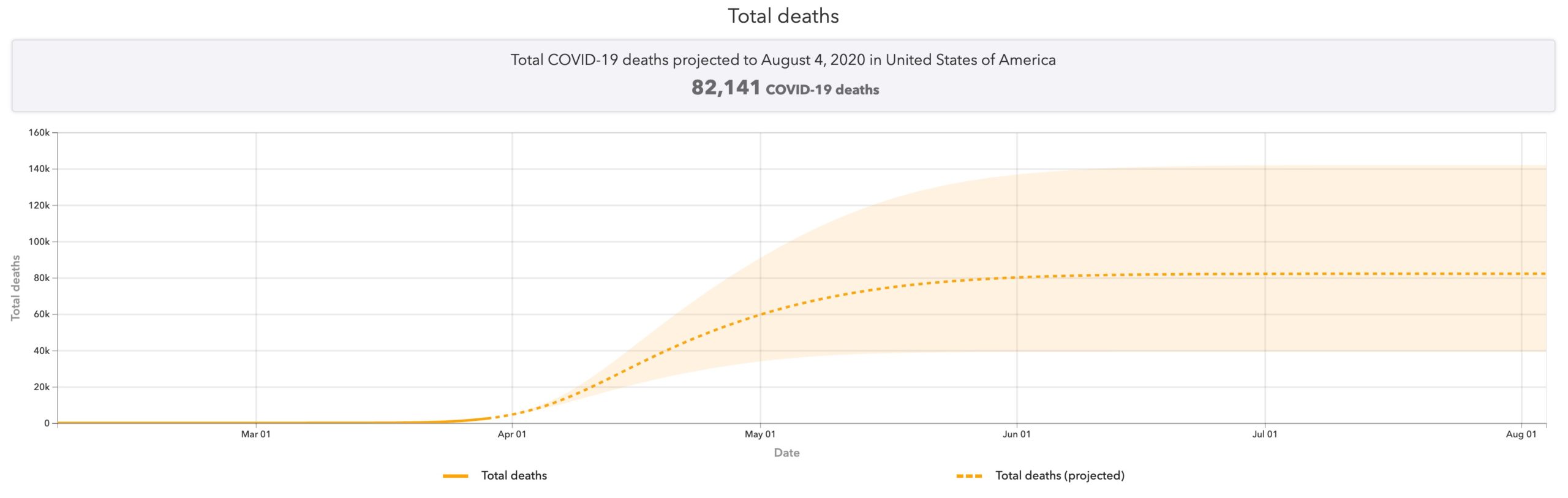 The guidance offered by federal officials mirrors updated projections released over the weekend by the Institute for Health Metrics and Evaluation (IHME) in Seattle, Washington. According to these projections, the coronavirus death toll is expected to fall anywhere between 40,000 and 142,000 over the next two-to-three months – peaking on April 15 and then declining gradually over the next six-to-eight weeks.