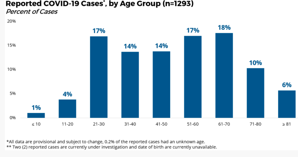 51 percent of South Carolina’s first 1,293 cases were patients over 51 years old, while 45 percent were people between 21-50 and 6 percent were kids under 20 years old.