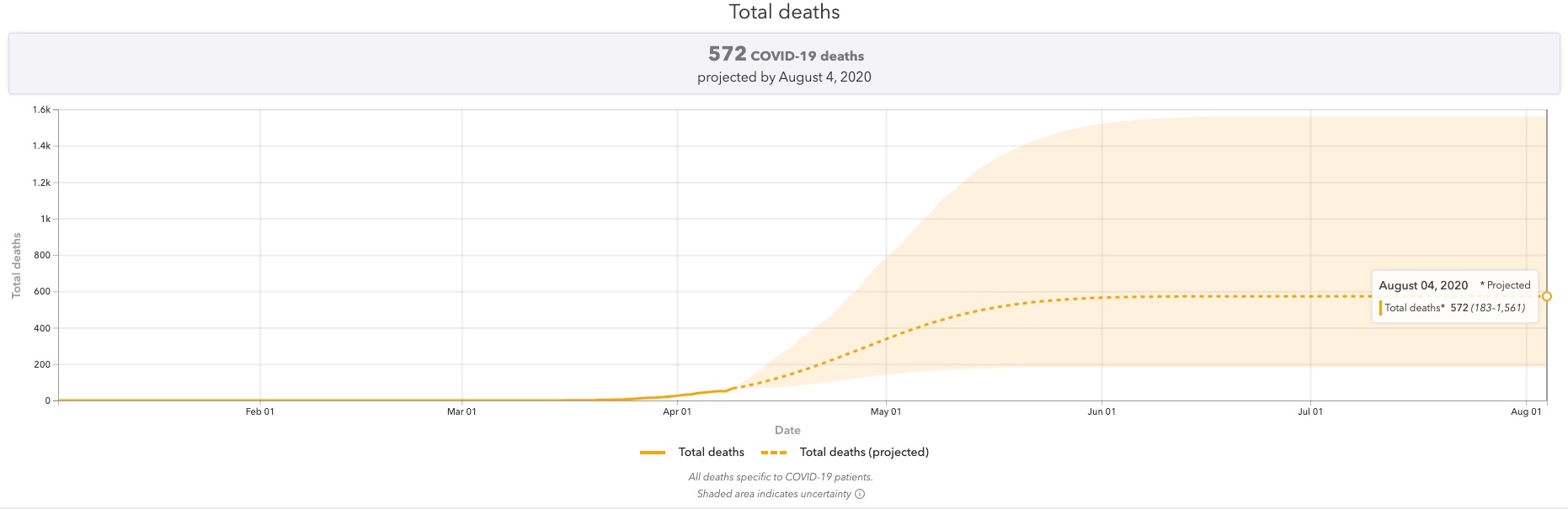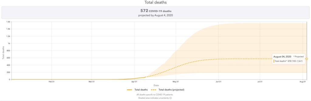 According to the latest data from the Institute for Health Metrics and Evaluation (IHME) in Seattle, Washington, 572 South Carolinians are now expected to die as result of exposure to the virus – above the 470 projected earlier in the week (but well below the 1,090 Palmetto State deaths the IHME was originally predicting).