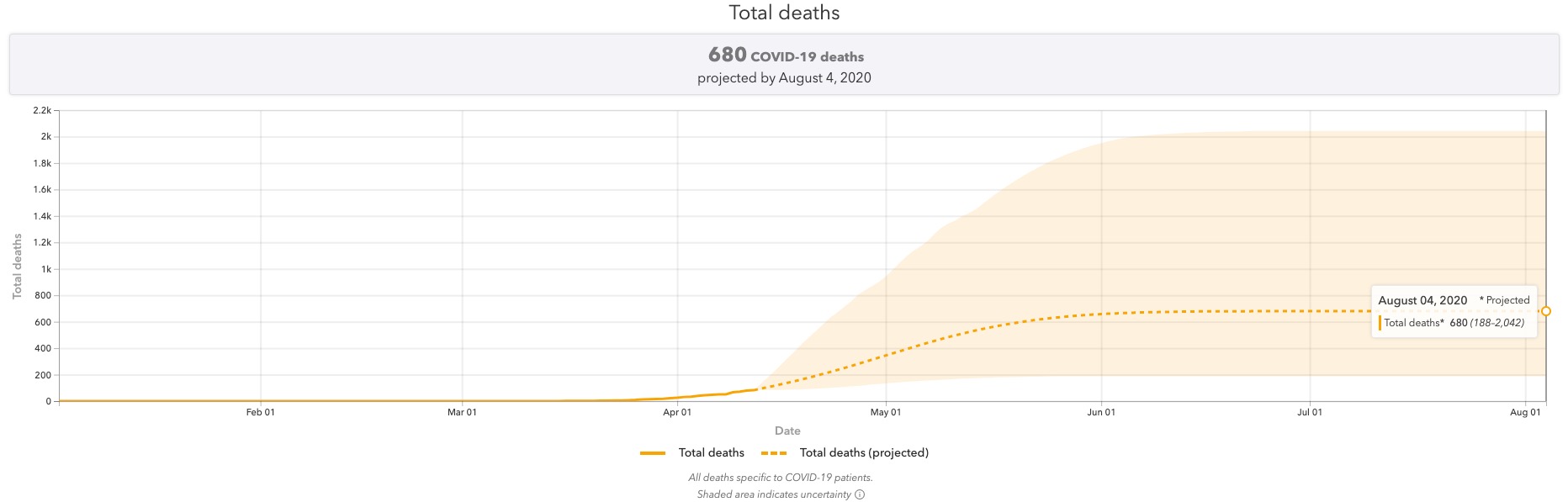 According to the latest projections from the Institute for Health Metrics and Evaluation (IHME) in Seattle, Washington, a total of 680 South Carolinians are expected to die as result of exposure to the first wave of the virus. That figure is higher than the 470 deaths projected early last week (but well below the 1,090 Palmetto State deaths the IHME was originally predicting).