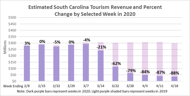 “About 44 percent of the state’s hotels were closed and occupancy hovered around 18-20 percent,” SCPRT noted in assessing the data. “Extended-stay facilities as well as hotels along the interstate performed better than facilities in downtown areas.”