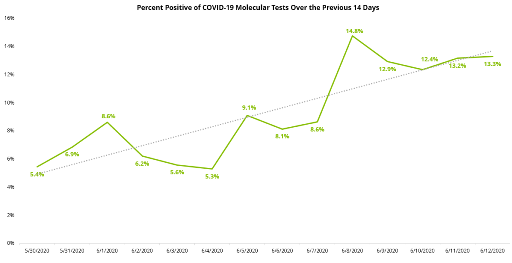 The sad reality confronting us? The percentage of tests coming back positive is continuing to climb after having dropped below three percent a month ago.