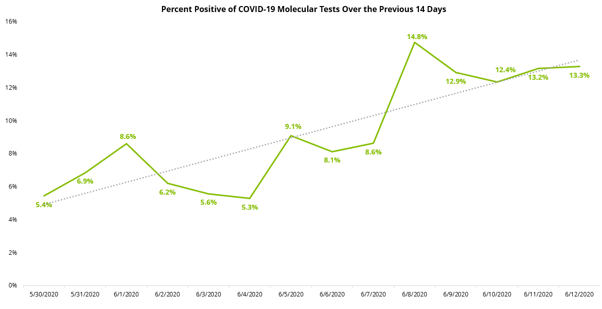 The sad reality confronting us? The percentage of tests coming back positive is continuing to climb after having dropped below three percent a month ago.