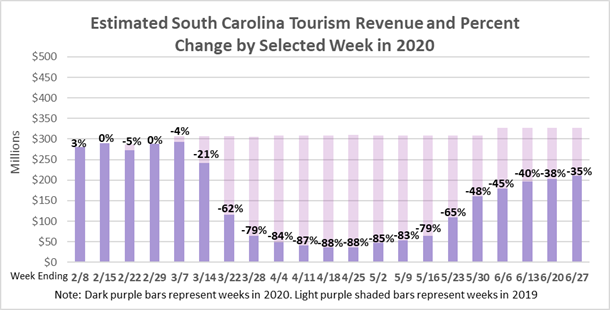 Last week, we noted how initial unemployment claims in South Carolina had settled into an “elevated holding pattern” following the initial systemic shock of the coronavirus pandemic. This week, it would appear as though a “new normal” is settling in with regard to tourism revenues as well … which is troubling news for states like South Carolina which rely on this industry to power their economies.