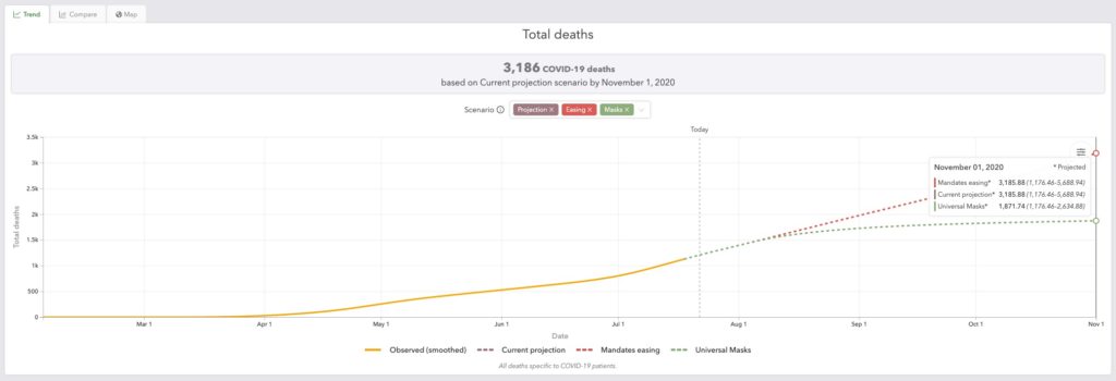 Better news? The “universal” use of masks in South Carolinas would dramatically reduce the estimate to 1,871 total fatalities over the same period.