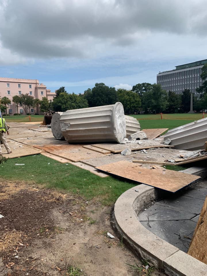 To recap: A 12-foot, eight-inch, 6000-pound bronze statute of Calhoun – a scroll clutched in his left hand – was placed atop a 115-foot stone pedestal in Marion Square in downtown Charleston, S.C. on June 27, 1896. It stood there unmolested until 5:30 p.m. EDT on June 24, 2020 – when work crews hastily contracted by the city sawed it off from the base following a unanimous vote by city council.