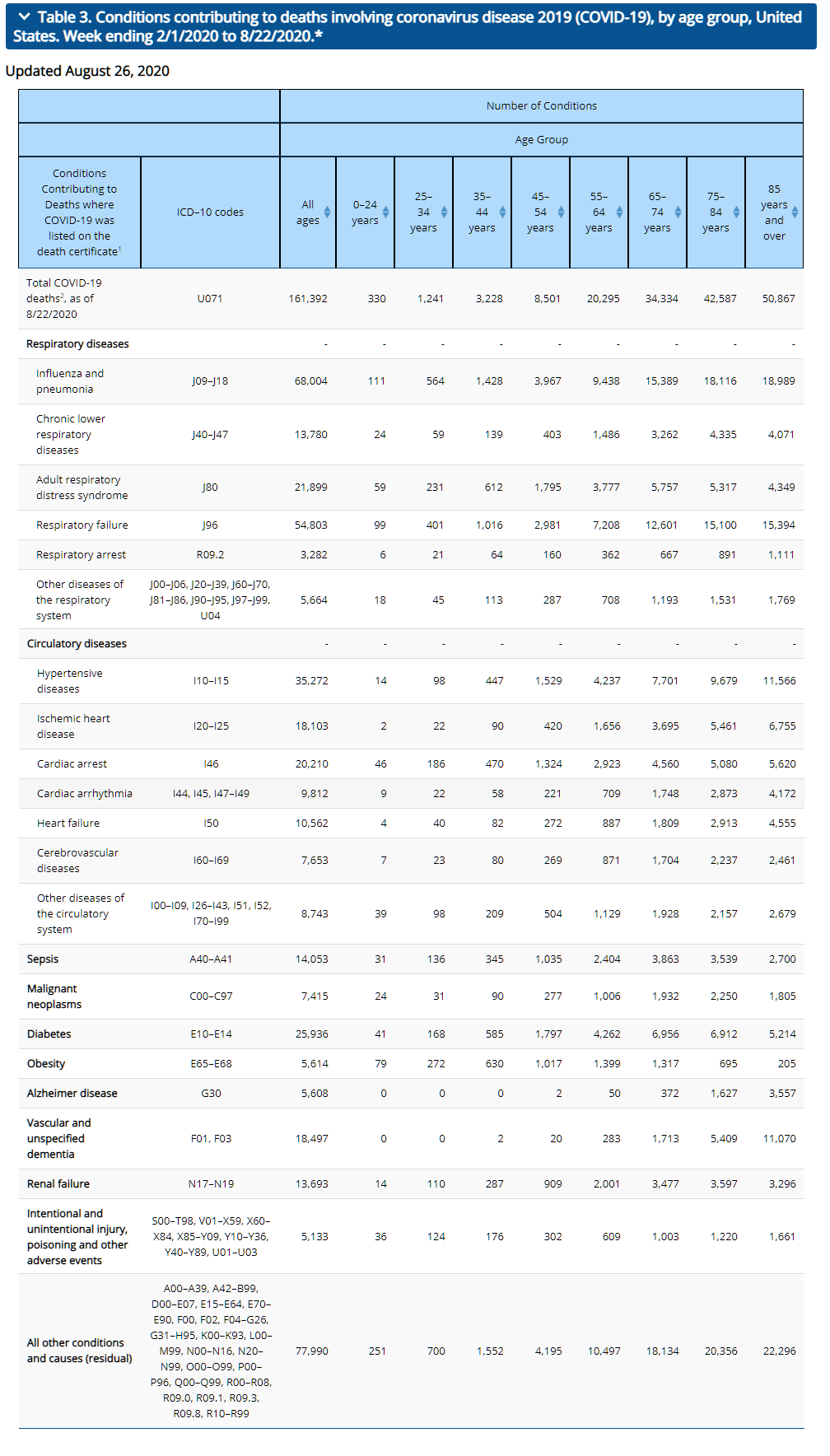 Speaking of classifications, last Wednesday the U.S. Centers for Disease Control and Prevention (CDC) quietly released updated weekly data regarding Covid-19 deaths in America (as of August 22, 2020).