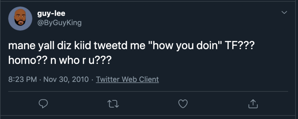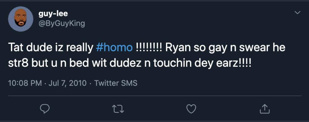 King apparently shared Maxwell’s views regarding gay men. In a November 30, 2010 tweet he referred to an unknown person on social media as a “homo.” Meanwhile, in a March 9, 2014 tweet he called a man named Peter “gay (as f*ck)” for getting involved with what he referred to as “women’s problems.”