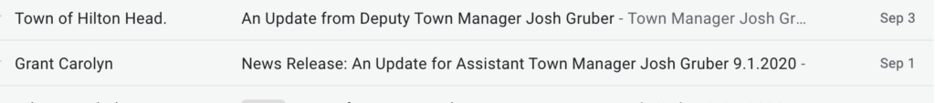 Immediately after the 2018 fiasco, Stu Rodman suggested that the county — a.k.a. taxpayers — pay Gruber, now a town of Hilton Head employee, a $100K “stay” bonus while Beaufort County Council completed the search for an administrator, Farrell reported at the time.