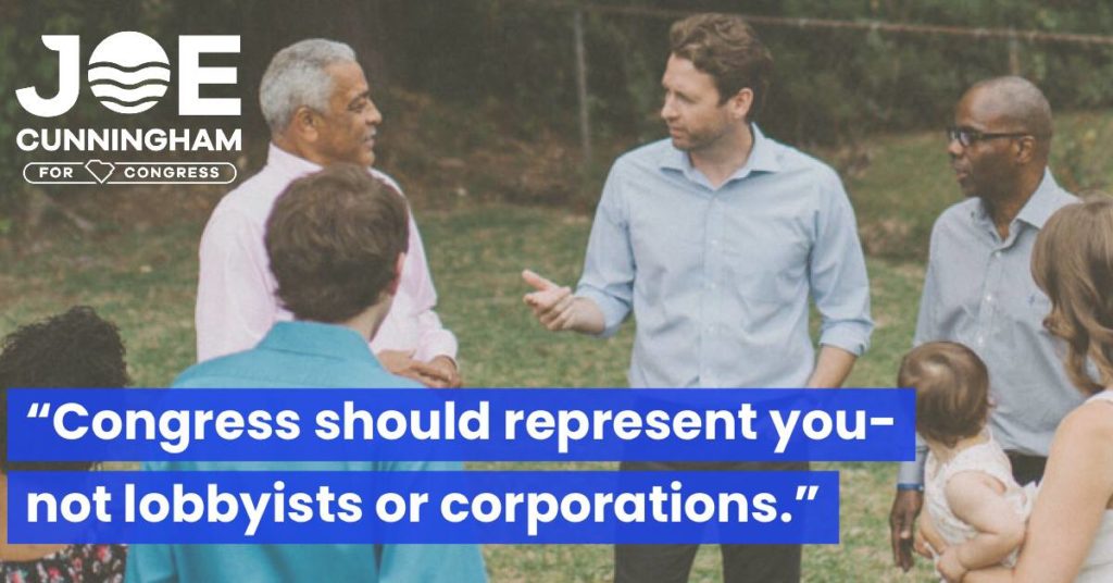 “Congress should represent you – not lobbyists or corporations,” Cunningham stated in one of his television ads.