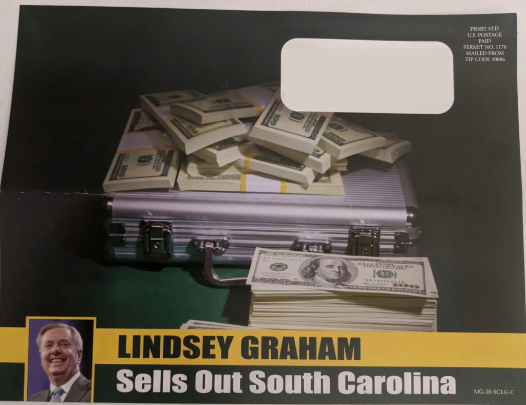 The mailings also tagged Graham for selling out to pharmaceutical corporations and the insurance industry.
