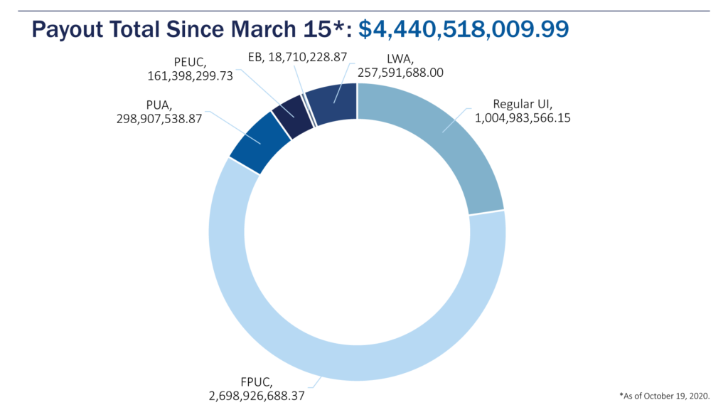 Since March 15, 2020, the state has paid out a staggering $4.44 billion in total unemployment benefits – including $2.7 billion in federal pandemic unemployment compensation (FPUC) payments. Another $1 billion has been doled out from the state’s unemployment insurance (UI) fund.