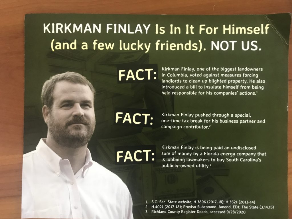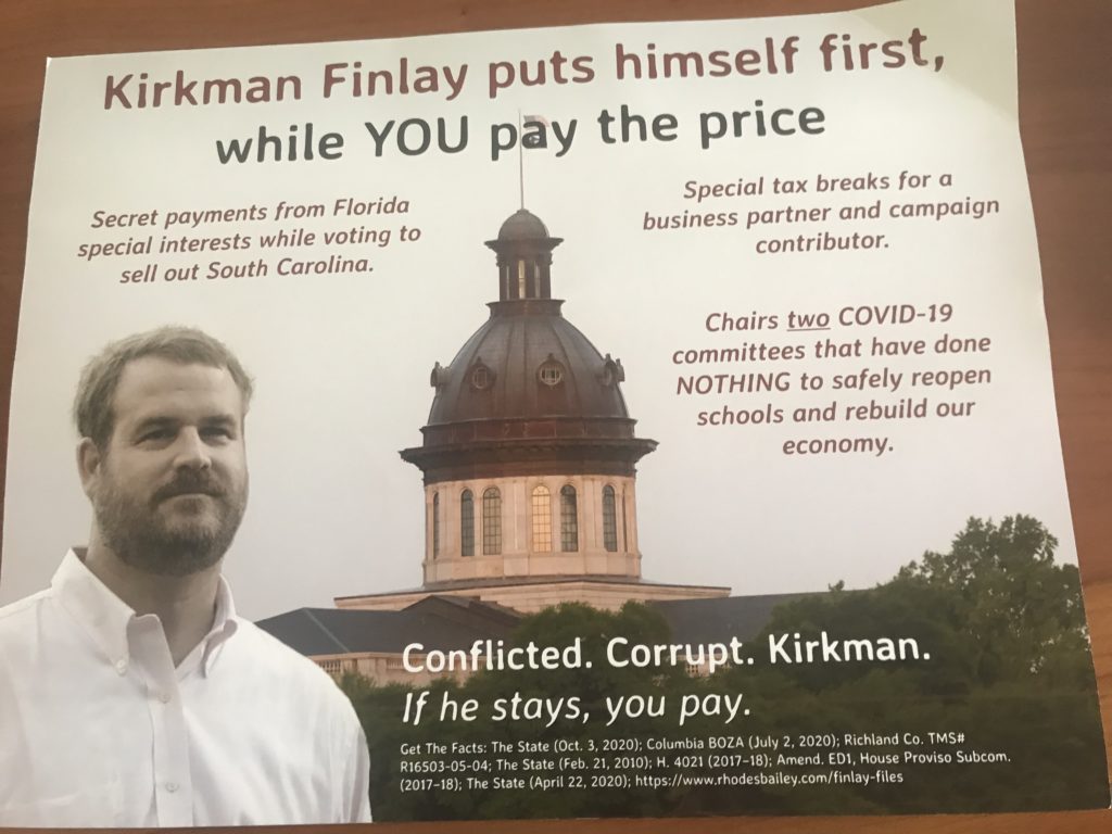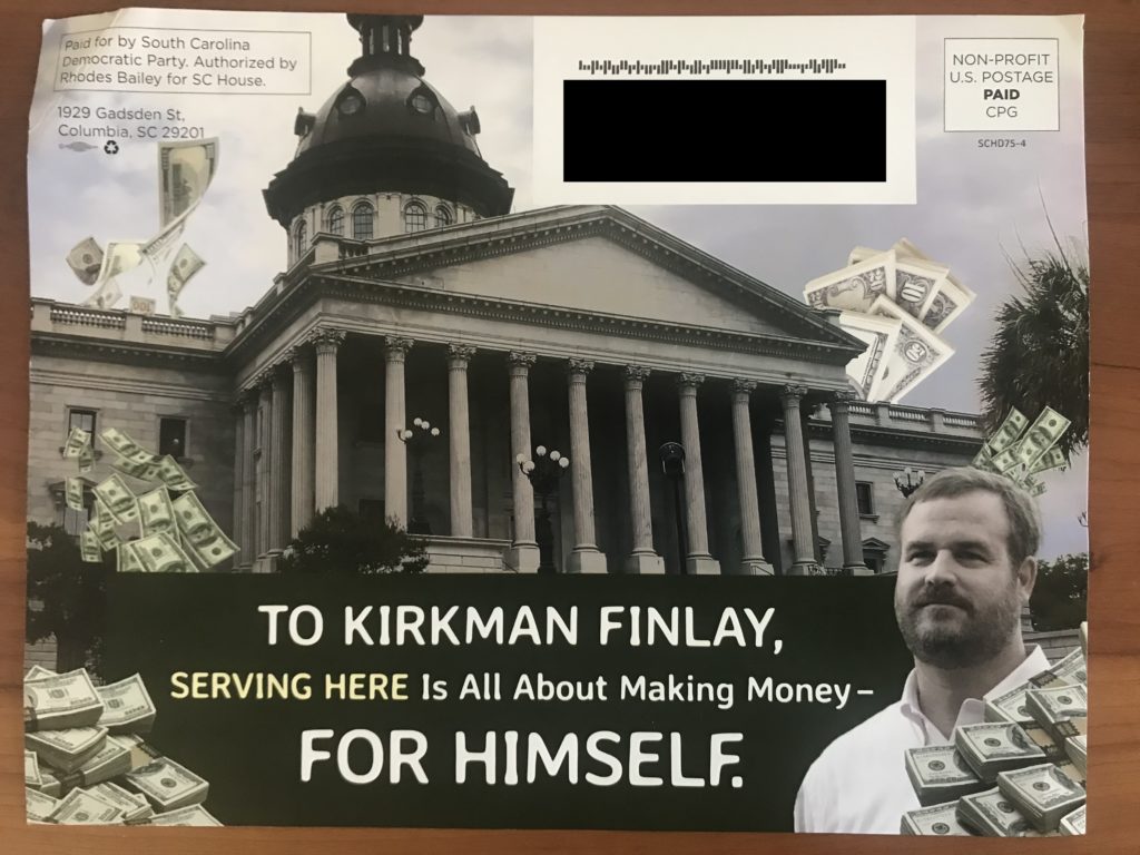 Fourth-term lawmaker Kirkman Finlay – the target of the mailings – is the only Republican in South Carolina who currently occupies a district that was claimed by Hillary Clinton in 2016.