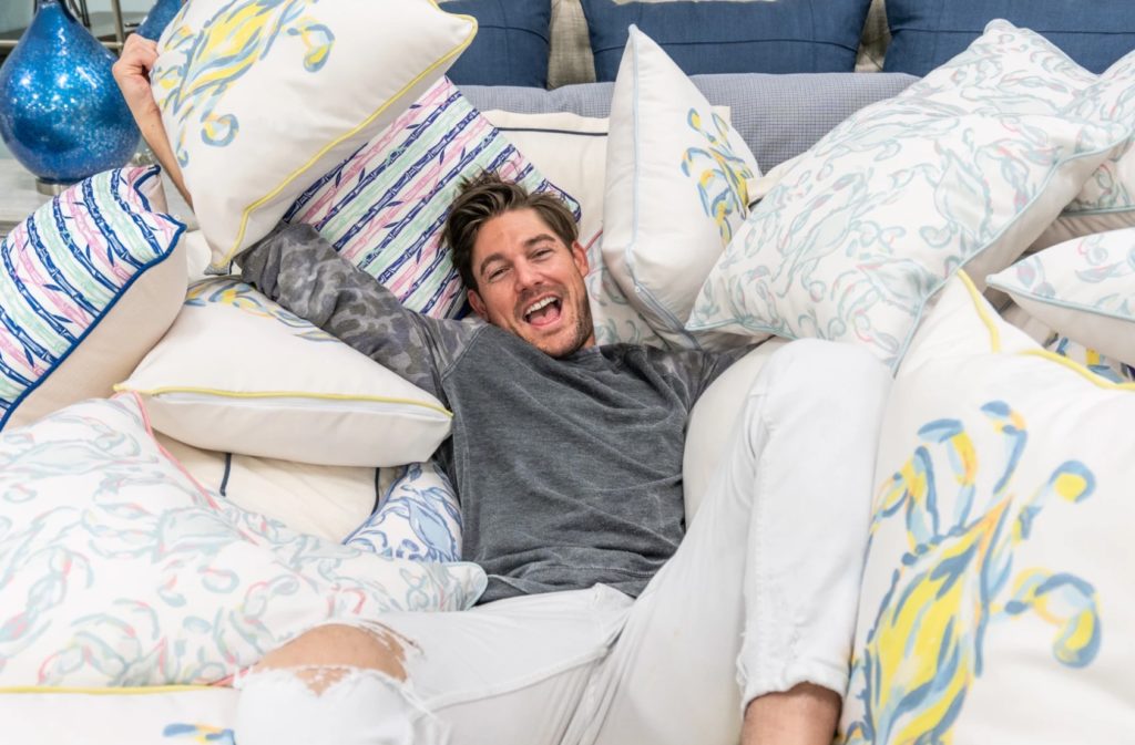 Conover shares that his company – Sewing Down South – is doing very well, and he even went on tour to do pillow party meet and greets. Ah, remember the good old days of cocktail parties – dipping crudite into the same bowl as many others before you? Good times!
