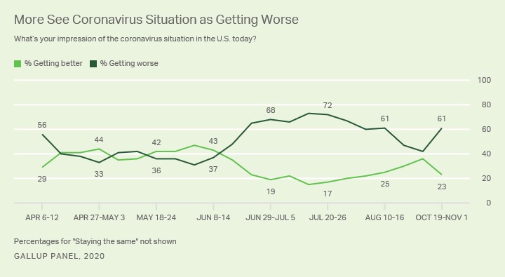 In her post, Saad detailed a host of other interesting data points related to public perceptions about the virus – including a sharp uptick in concerns about its trajectory just prior to the disputed presidential election.