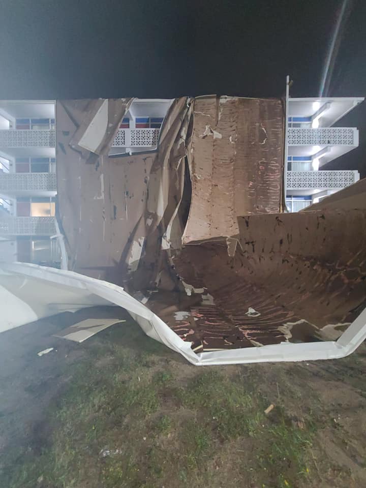 According to The (Myrtle Beach, S.C.) Sun News, “no guests were staying on the side of the building where the roof was blown.”
