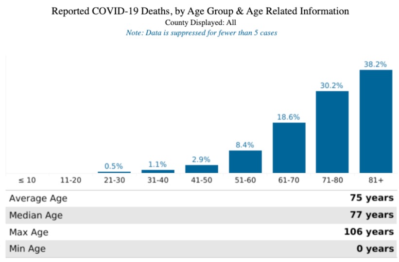 According to SCDHEC, 87 percent of Covid-19 fatalities in the Palmetto State are among citizens 61 years of age or older – including 68.4 percent among citizens 71 years of age or older and 38.2 percent who were 81 years of age or older.