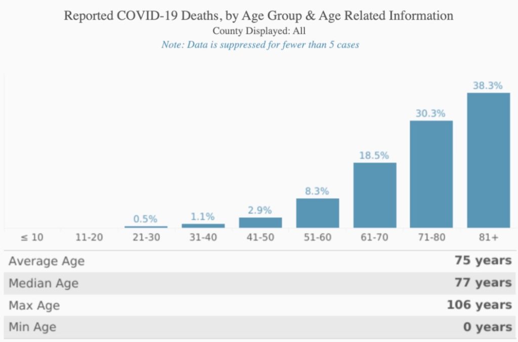 Again, we do not present this data in an effort to minimize the impact of the virus (or to place a premium on one life over another). Furthermore, those who have lost loved ones to the virus clearly do not hurt any less because their friends or relatives were advanced in years.