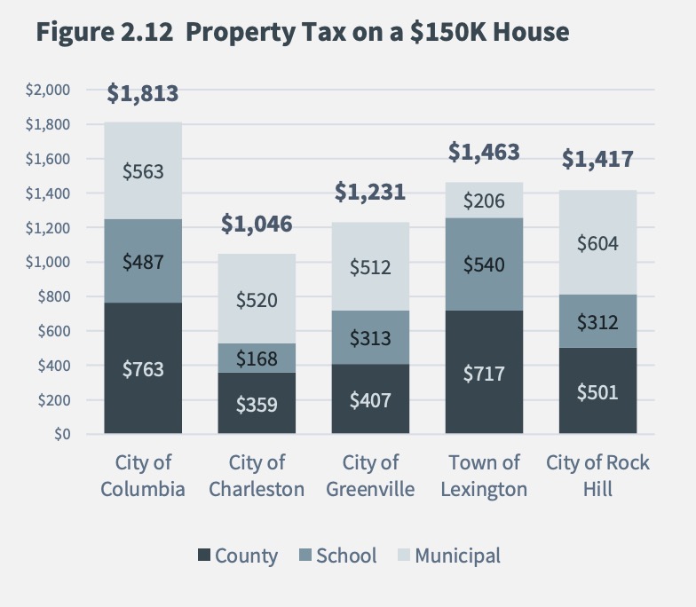 “City of Columbia property tax on owner-occupied housing is significantly higher than all other peer markets,” Gunnlaugsson’s report noted. “The largest factor contributing to the level is the Richland County millage rate, surpassing peers by a substantial amount.”