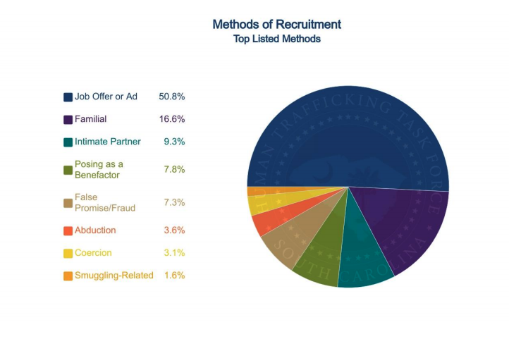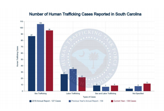 On Monday, South Carolina Attorney General Alan Wilson released the 2020 Human Trafficking report, which showed a change in the top 5 counties in South Carolina and a decrease in annual cases.
