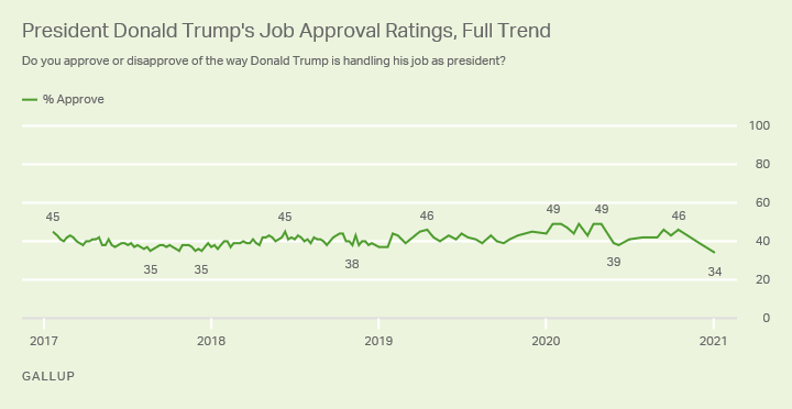 DCHeadlinesPOLITICSGallup Poll: Donald Trump Leaving Office On A Historically Low NotePresident’s post-riot polling plummets … by FITSNewsJanuary 19, 2021December 19, 20220 President Donald Trump will leave office this week with an approval rating of only 34 percent, accorYou must Subscribe or log in to read the rest of this content.