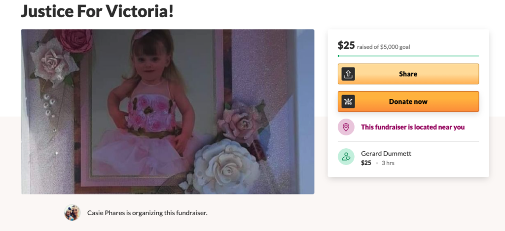 The GoFundMe page “Justice for Victoria!” was created Monday morning.
