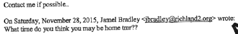 “Happy Thanksgiving… miss you,” Bradley wrote from his Richland Two email account weeks before the incident at Target.