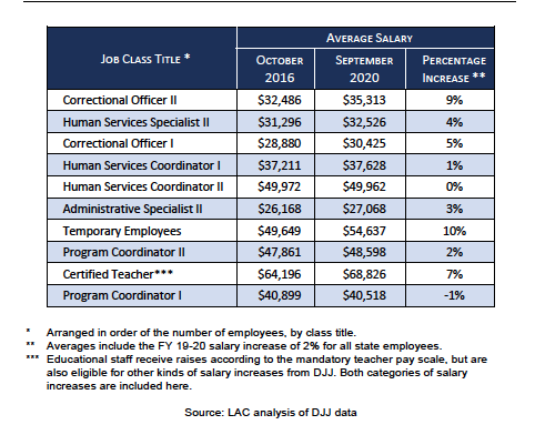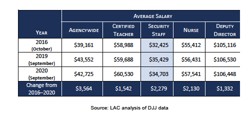 “It is likely that lower pay and fewer raises have contributed to the decrease in the number of employees in these positions and, indirectly, to the decline of security at DJJ’s facilities,” the report said.