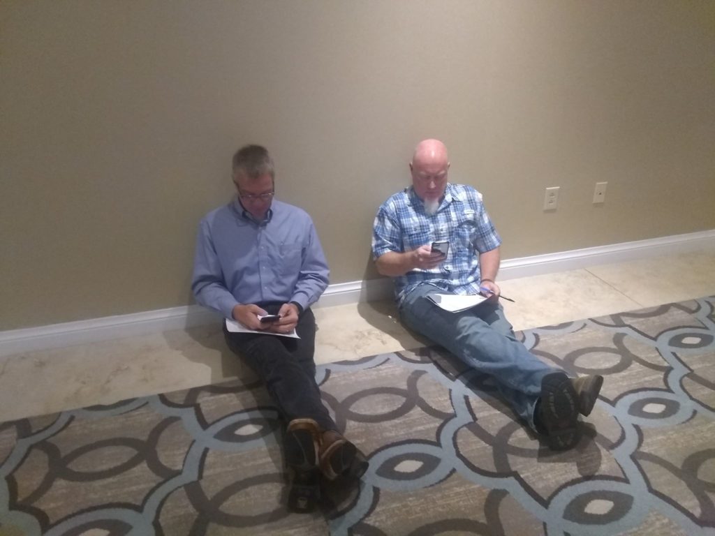 The ballroom was packed to capacity as people hunkered over smartphones, tablets and laptops. Tech savvy volunteers circulated through the crowd, assisting those having trouble connecting to the hotel’s wifi. At one point, Stutts explained to the crowd the two resolutions that were being voted on. Attendees erupted in applause when he announced one resolution was to declare South Carolina a Bill of Rights Sanctuary State.