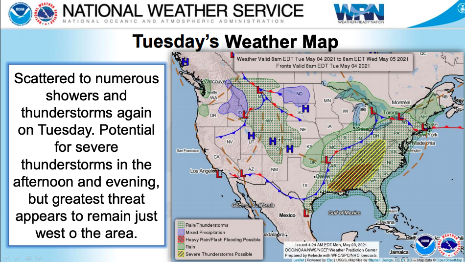 “Now is the time to ensure you have multiple ways of receiving warnings as ingredients are in place for severe weather. This includes strong to severe thunderstorms and possible tornadoes,” forecasters at NWS- Columbia said.