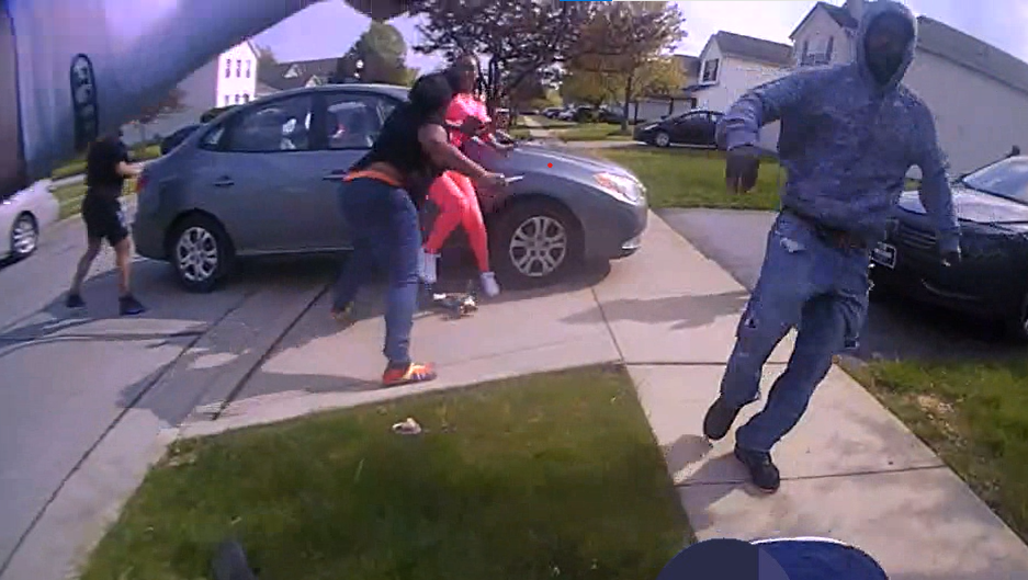 Here is a police-worn body camera image of Bryant attempting to stab 22-year-old Tionna Bonner …