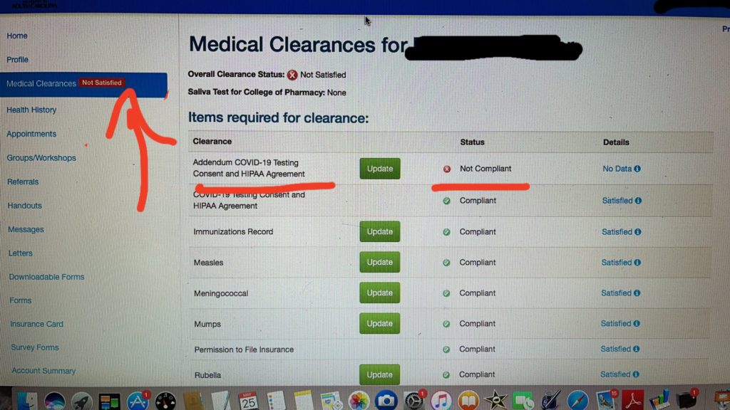 Frustrated, the parent I spoke with sought a response from the school – informing officials that “there’s been no mention of (students) signing off on (their) HIPAA rights” in order to be “compliant” with the university’s medical clearance requirements.