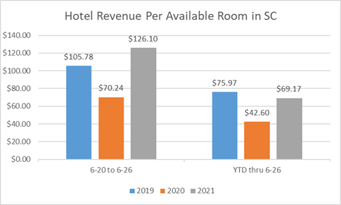 The week ending June 26, 2021 was another solid one for the tourism industry in the Palmetto State, according to the latest numbers from the S.C. Department of Parks, Recreation and Tourism (SCPRT).