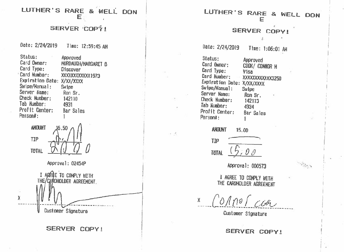 This was captured on surveillance video and by receipts. Paul used his mother’s credit card for shots.