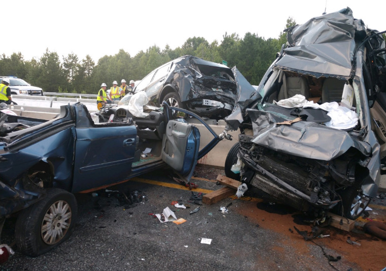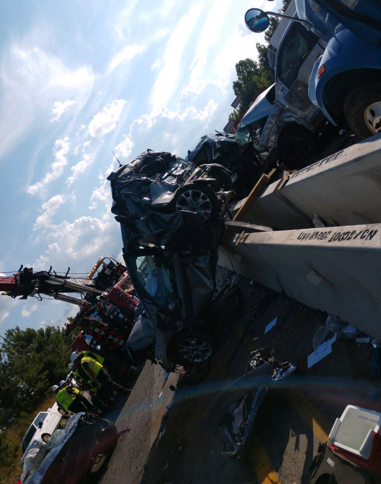 The crash is under investigation by the S.C. Highway Patrol (SCHP), but initial reports indicate the tractor trailer started a horrific rear-end collision – one that resulted in multiple vehicles in the southbound lane being hurled over a concrete barrier into the northbound lane.