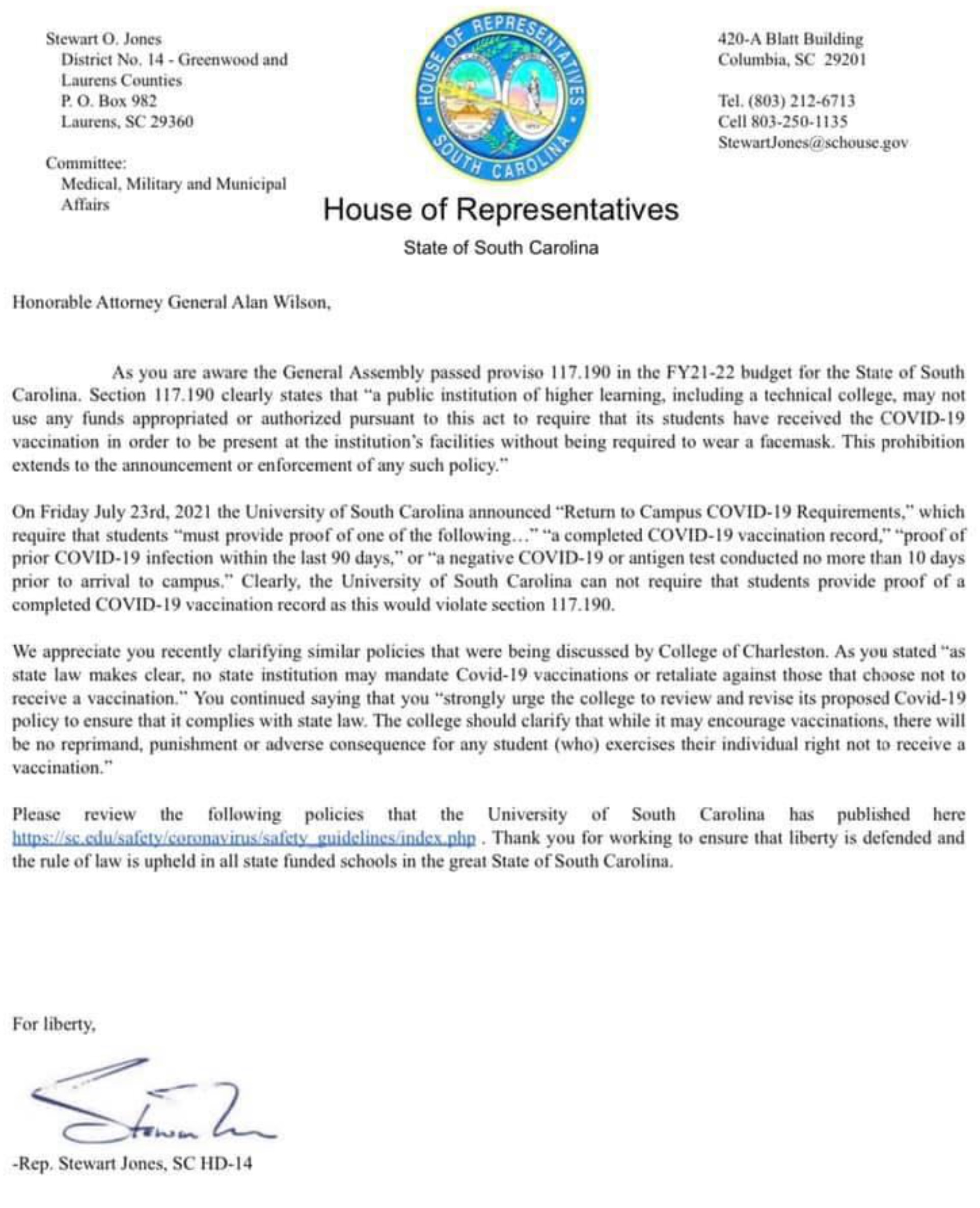 SCHeadlinesUniversity Of South Carolina’s Covid-19 Protocols QuestionedAttorney general asked to weigh in … by Will FolksJuly 25, 2021July 28, 20210 Earlier this month, my news outlet reported on efforts by the College of Charleston (CofC) to imposeYou must Subscribe or log in to read the rest of this content.