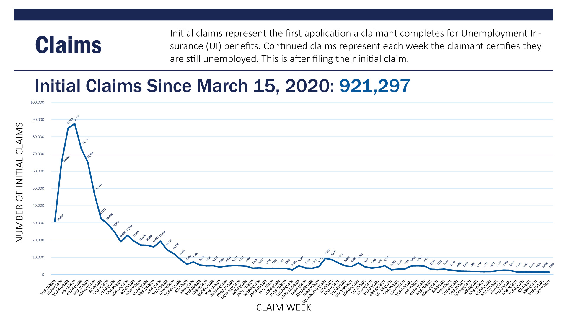 According to the latest federal data published by the S.C. Department of Employment and Workforce (SCDEW), initial unemployment claims stood at 1,315 during the week ending August 28, 2021. That is a new post-pandemic low – and is actually well below the pre-Covid-19 benchmark of approximately 2,100 initial weekly claims.