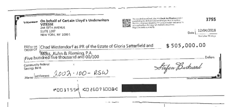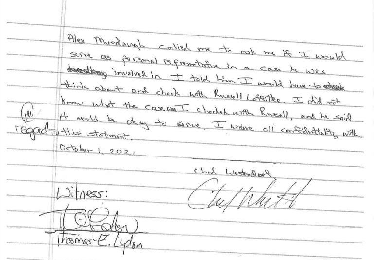 On October 1, the same day Fleming and his law firm settled with the Satterfield estate, Westendorf signed a statement that said he asked his boss Russell Laffitte, CEO of Palmetto State Bank, if Westendorf could serve as personal representative of Satterfield’s estate.