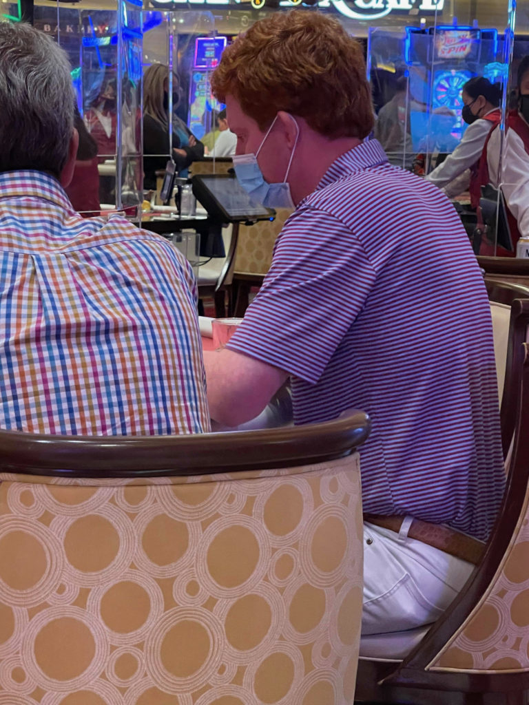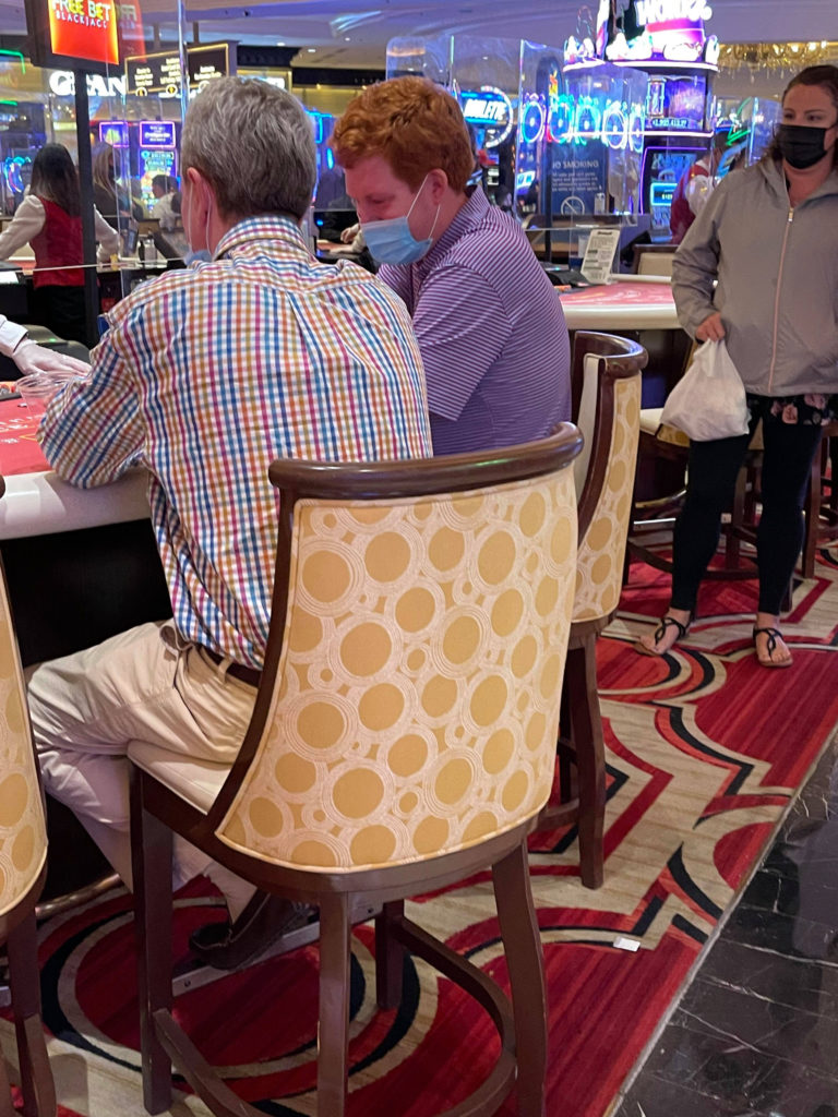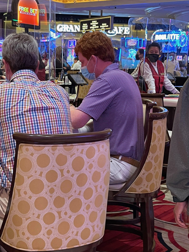 After playing roulette, Buster and John Marvin moved to one of the Venetian’s blackjack tables. That’s when our source snapped a few quick pictures as the duo gambled and drank together …