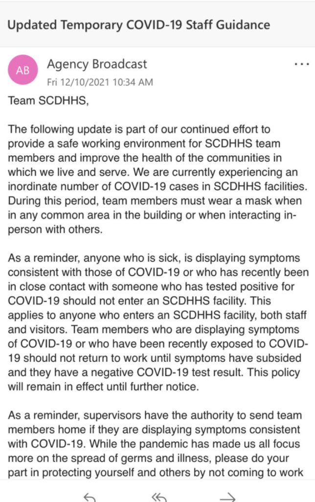 CoronavirusSouth Carolina Medicaid Agency Warns Employees Of ‘Inordinate’ Covid-19 SpikeMask mandate imposed … by Will FolksDecember 14, 2021December 15, 20210 The South Carolina Department of Health and Human Services (SCDHHS) is not the tip of the speaYou must Subscribe or log in to read the rest of this content.