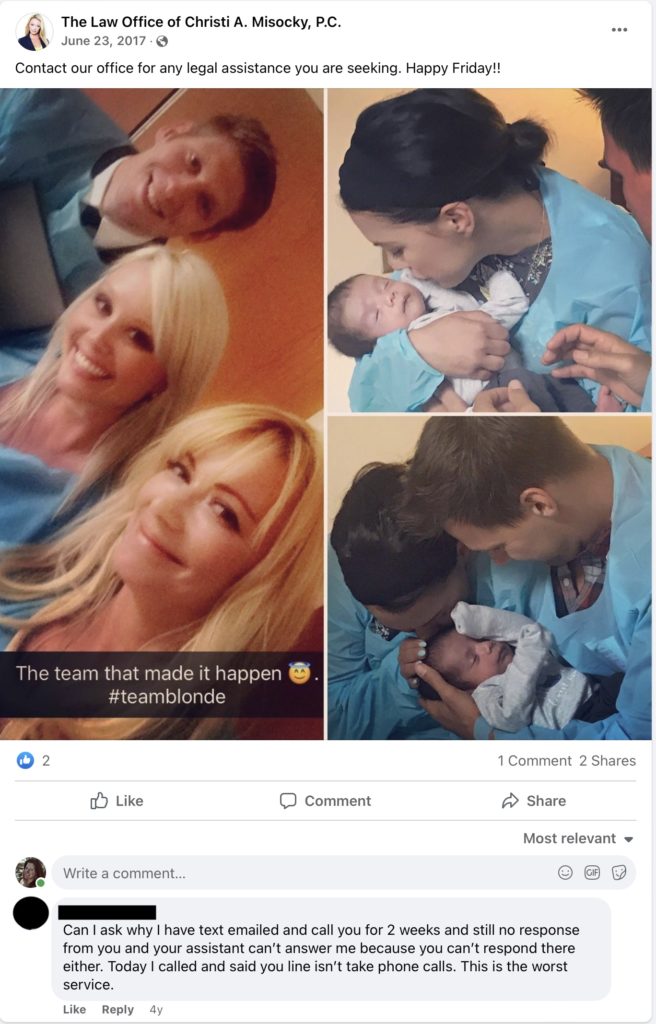 Problems with Misocky began to surface in 2017 when a client accused her of failing to communicate important details about a 2016 child support modification action brought against him.