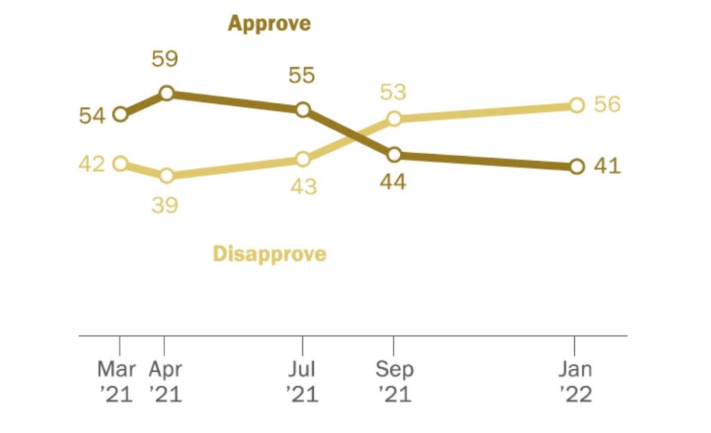“Joe Biden began his presidency with positive job ratings and broad public confidence in his ability to deal with a number of major challenges – particularly the public health impact of the coronavirus,” Pew pollsters noted. “He starts his second year with diminished job approval and majorities expressing little or no confidence in him on many of these same issues, the coronavirus included.”